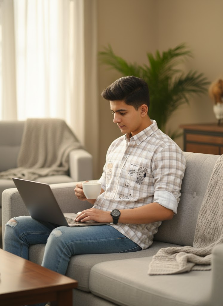 Men’s Beige & White Printed Checked Imported Slim Fit Casual Shirt