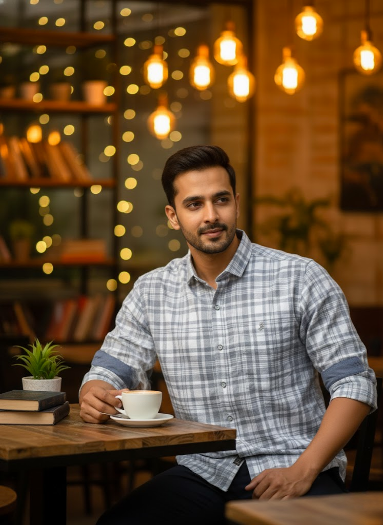 The Grey Check Shirt from Kapda Sale is designed for men who move between meetings and moments.