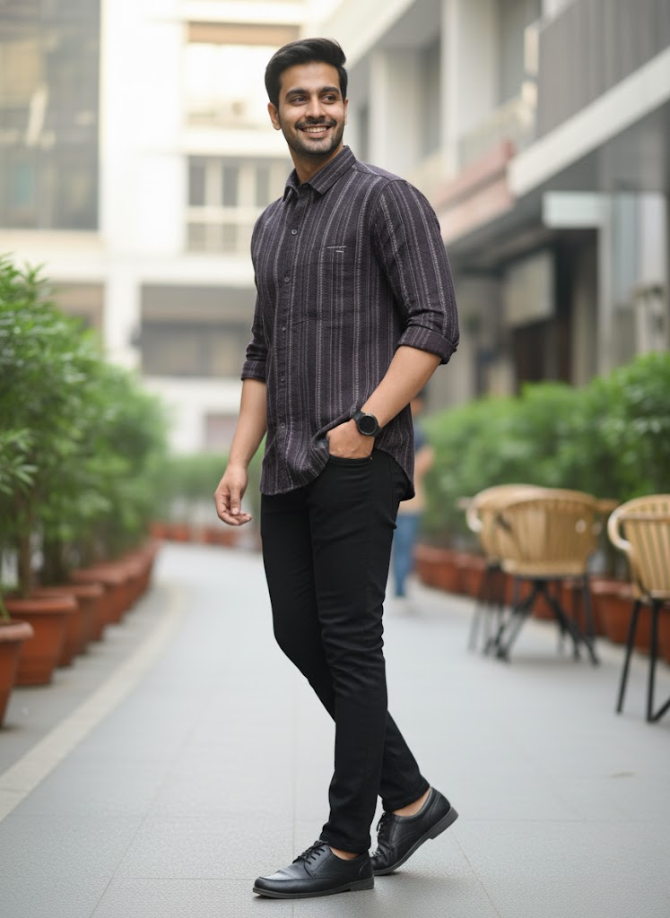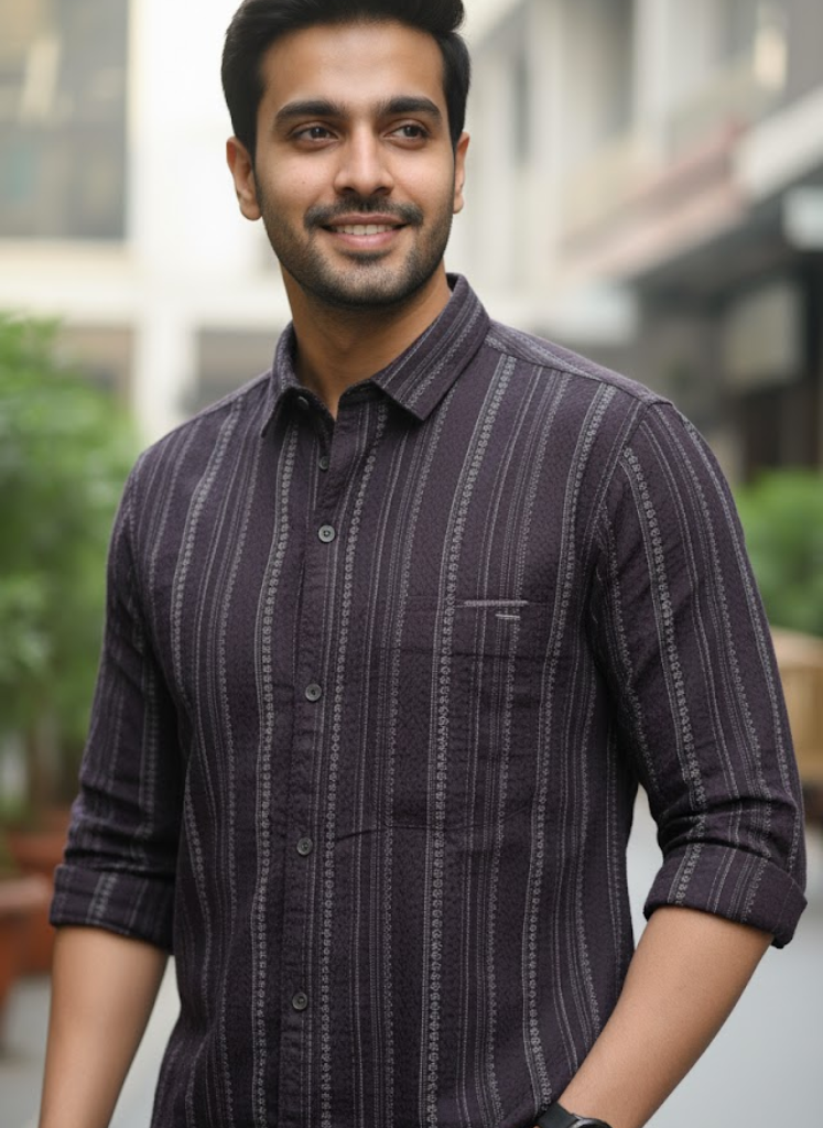 Men’s Vertical Striped Cotton Slim Fit Casual Shirt
