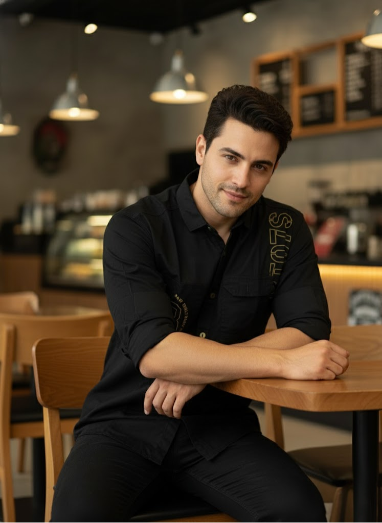 Men’s Double Pocket Black Cotton Stylish Casual Shirt