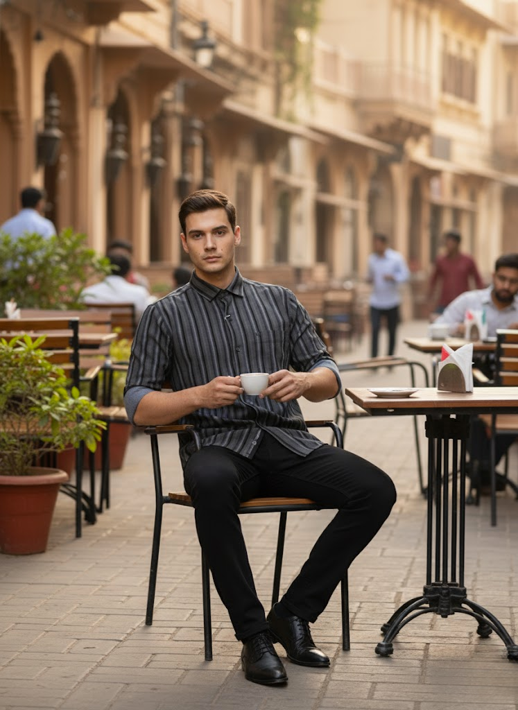 Men’s Black & Grey Striped lycra Slim Fit Casual Shirt