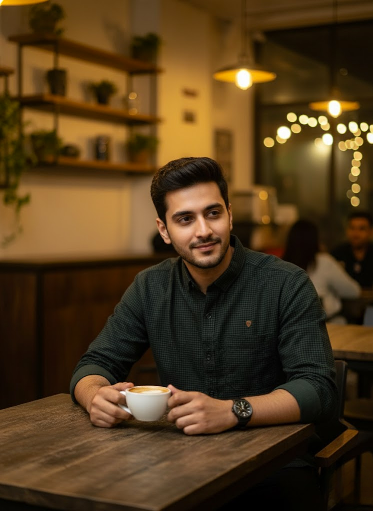 Men’s Deep Green Micro-Check Shirt – Urban Evening Edition