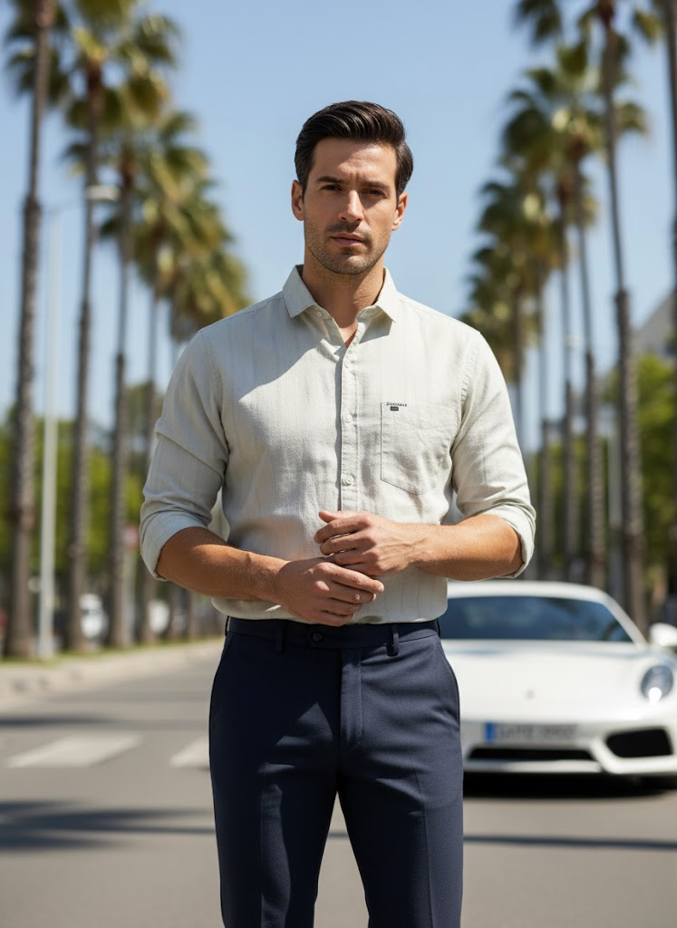 The neutral beige tone makes it perfect for both casual and semi-formal occasions. Pair it with navy, black, or olive trousers for a smart, confident appearance that never goes out of style.